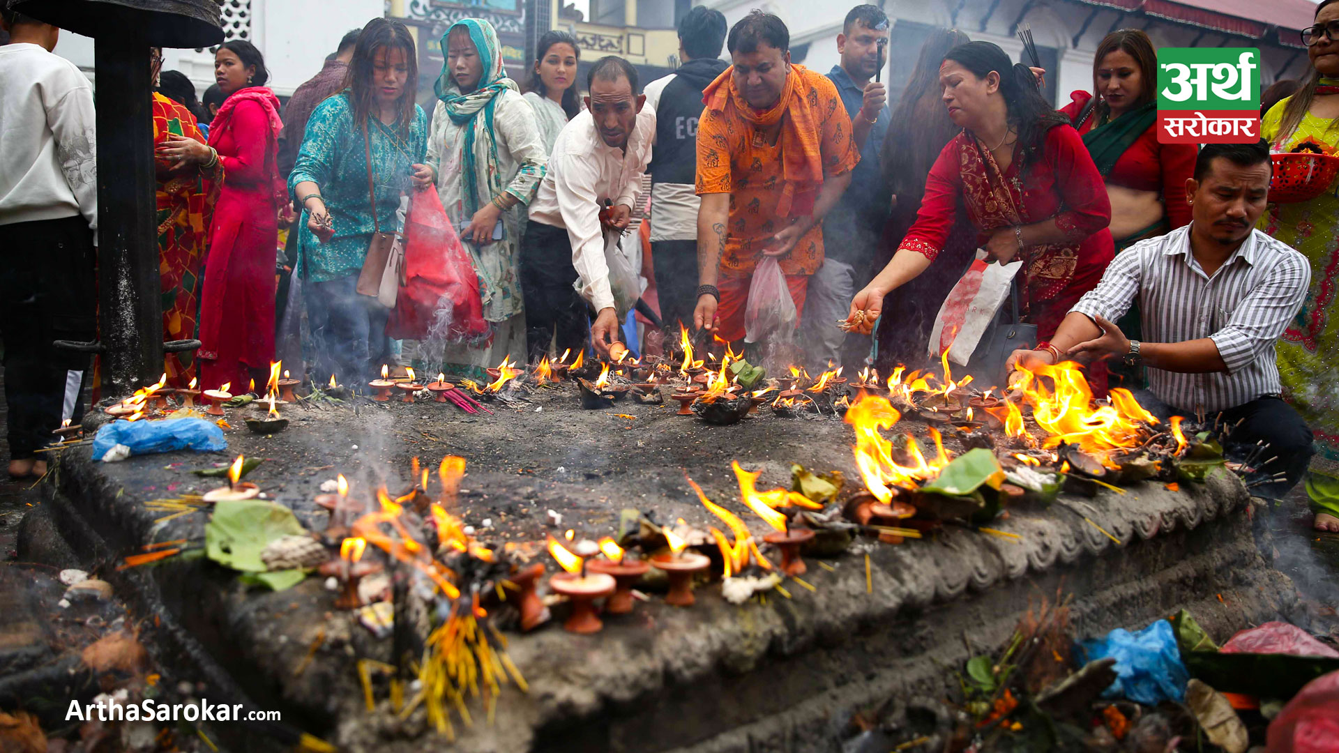 काठमाडौँ । आज साउनको अन्तिम सोमबार पशुपतिमा भक्तजनको भीड लागेको छ । सोमबार शिवजीको बार भएकाले पशुपति मन्दिरमा दर्शन गर्न व्रतालु तथा श्रद्धालुको भीड लागेको हो । यस दिन विशेषगरी आशुतोष भगवान् शिवको पूजा तथा आराधना गरिन्छ ।
