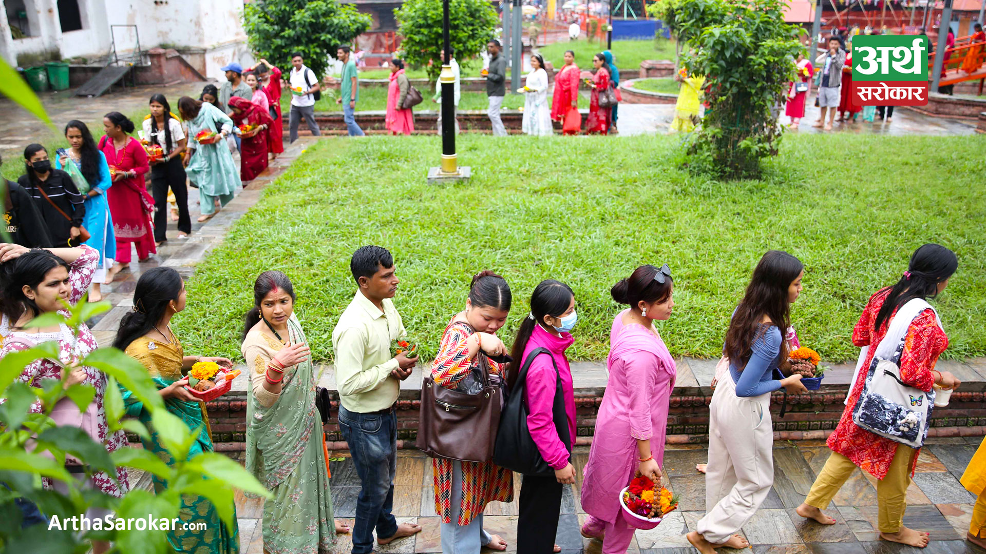 साउन महिना भगवान् शिवको महिना मानिन्छ, र सोमबार शिवजीको बार भएकाले आज श्रावणको अन्तिम सोमबार पशुपति मन्दिरमा दर्शन गर्न व्रतालु तथा श्रद्धालुको भीड लागेको छ। यस दिन विशेषगरी आशुतोष भगवान् शिवको पूजा तथा आराधना गरिन्छ। बाँकी तस्विरमा हेर्नुहोस्: